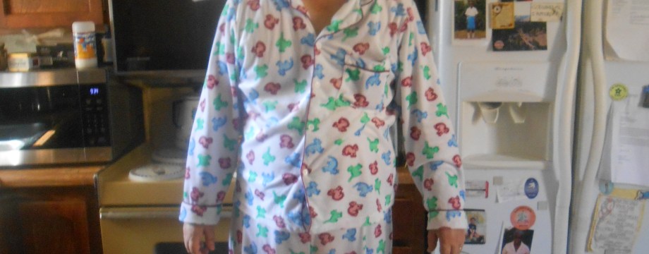 Here I am, ready to start the day in my work pajamas.
