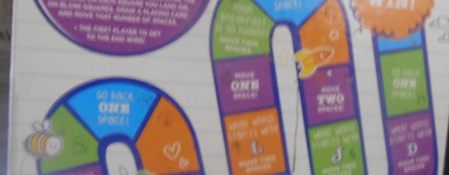 Please look at the picture of the Alpha-Bits game. (Sorry, it’s a bit blurry. I have fired my camera man.) You draw from a deck of cards, containing each of the following numbers, 1, 2, 3, and 4. If you draw a 1, you move your piece, an Alpha-Bit letter, ahead one square, and so on. However, there is something funny about the game. Unsettling even.
