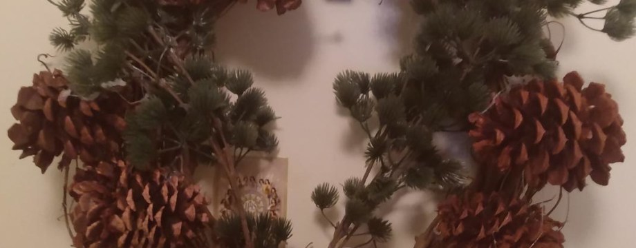 Hi! This is the Christmas Wreath I made. I dyed the pinecones and glued to a wreath made of branches. I hope all of you are holding up well and are stress free, and happy.