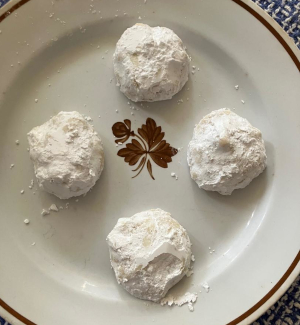 While cookies cool, add confectioners’ sugar and True Lemon crystals to small mixing bowl. Stir with whisk or fork until well blended. Preheat oven to 340 degrees. Place parchment paper on cookie sheets. Roll dough into little balls about 1″ wide. Place dough balls on parchment paper. Leave a 1″ gap between dough balls. Bake at 340 degrees for 12 minutes or until golden brown. (Baking times for any successive batches may vary.) Let cookies cool for 2 minutes before transferring with a spatula to wire rack or cold plate.
