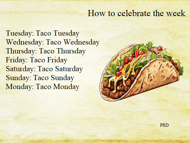 People often ask how they should honor and have fun with every day. In particular, what food goes with what day.