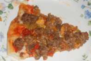 Set the timer or the menu on the bread maker to “Dough.” Wait the required time, probably a bit more than an hour. In the meantime liberally spray the pizza pan with no-stick spray. This will prevent the crust from forming a glue-like bond with the pan.
