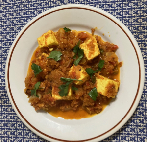 Add red lentils and fenugreek leaves to pan. Simmer on low heat for 2 minutes. Stir occasionally. Add lemon juice. Stir until well blended. Garnish with fresh cilantro. Goes well with naan.