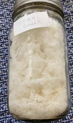 * = Belgian pearl sugar is larger than the Swedish variety and resembles pearly white pebbles. It’s sugar, if you can find it, has large granules made from sugarbeets. The Belgian variety is best for Liege, or Belgian, waffles. Swedish pearl sugar, pärlsocker, has smaller sugar granules. Use Swedish pearl sugar to top pastries, cakes, and breads.