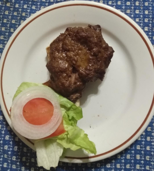 Combine above sautéed aji-panca-pepper mixture in mixing bowl with ground beef, and parsley flakes. Makes 6 patties.