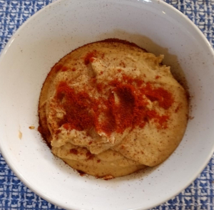 Add contents of pot to blender. Puree until smooth. Add lemon juice. Puree briefly until well blended. Garnish with cayenne and harissa. Goes well with flatbread.