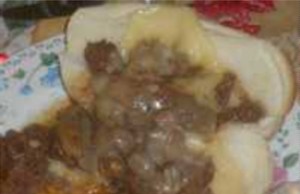 Philly cheese steak and root beer.