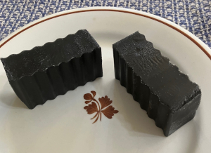 Cut charcoal base into 1″ cubes. Add charcoal cubes to large glass measuring cups. Melt base in 30 second intervals. Stir after every time. Add bergamot and lavender essential oils.