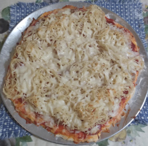 Note: This another version of pizzaghetti that simply has spaghetti and sauce served next to one or two slices of pizzas. To me, the version presented here is much more exciting.